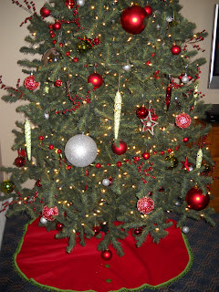 One of my favorite things that I made was a tree skirt that I whipped up based on this tutorial by Kojo Designs. Simple, super-cute, and finished in under an hour! Now that's my kind of sewing project :)